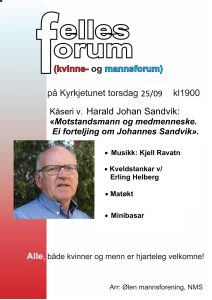- Kåseri ved Harald Johan Sandvik: «Motstandsmann og medmenneske. Ei forteljing om Johannes Sandvik».